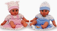 Lot de 2 poupées"fille" 2 poupées filles avec leurs couvertures et leurs bonnets, avec leurs petits yeux verts et marrons qui se ferment, leurs corps au bourrage mou, leurs membres et leurs têtes en vinyle souple. 2 poupées de bonne compagnie. (29x15 cm) Dès 12 mois Ref: 2027 Cliquer sur l'image pour zoomer et/ou acheter