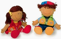 Poupées découvertes 2 poupées : un garçon, une fille, en tissu lavable avec fermetures éclairs, boutons, cordons et fermeture velcro pour la motricité fine. Dès 12 mois. Env 34 cm Ref: 2032 Cliquer sur l'image pour zoomer et/ou acheter