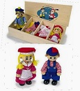 Boîte à vêtements et ses 2 poupées 2 poupées souples et mignonnes de 14 cm avec différents vêtements dans une boite pour le rangement . Jupe , bonnet,short, cravate, casquette…Idéal pour la motricité en s’amusant à habiller ce couple de poupées et leur garde-robe. Dès 2ans Env 30x16cm Ref: 2034 Cliquer sur l'image pour zoomer et/ou acheter